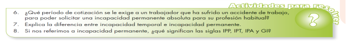 Las siguientes personas han sufrido algún grado de incapacidad permanente. Valora que grado de incapacidad tienen y qué prestación recibirán de la Seguridad Social.