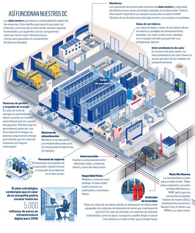 Cada edificio albergará los servidores informáticos y los equipos de almacenamiento de datos, que son los principales elementos necesarios para la producción de contenidos y servicios digitales y toda la actividad de procesamiento y almacenamiento relacionada.