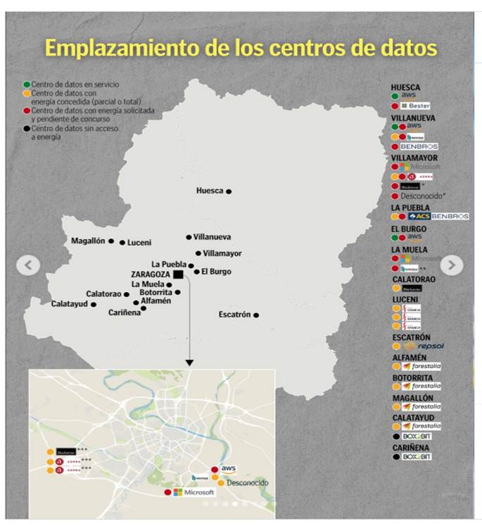 Son las apuestas confirmadas, pero lo cierto es que la comunidad aragonesa y, especialmente, la provincia de Zaragoza están experimentando un gran número de visitas y de realización de estudios y proyectos para analizar la posible implantación de más centros de datos.