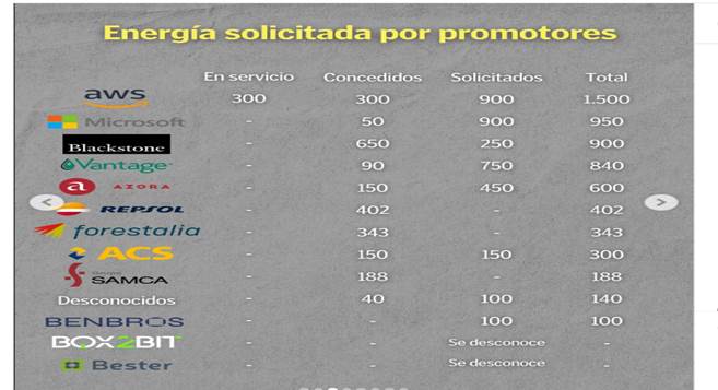 3¿Dónde están ubicados los centros de datos que ya tienen concedida la energía solicitada?