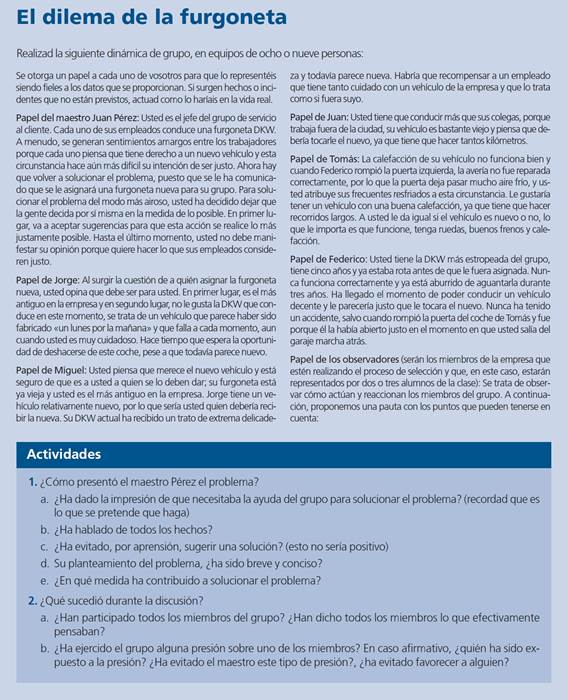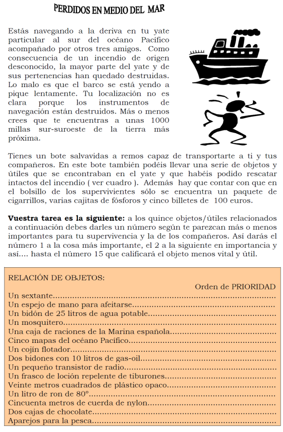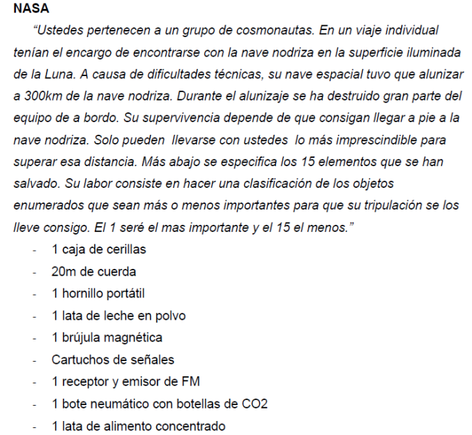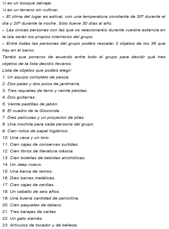 Hace grupos de diez personas y propone una situación que el equipo deberá debatir. Lo más importante es ponerse de acuerdo.