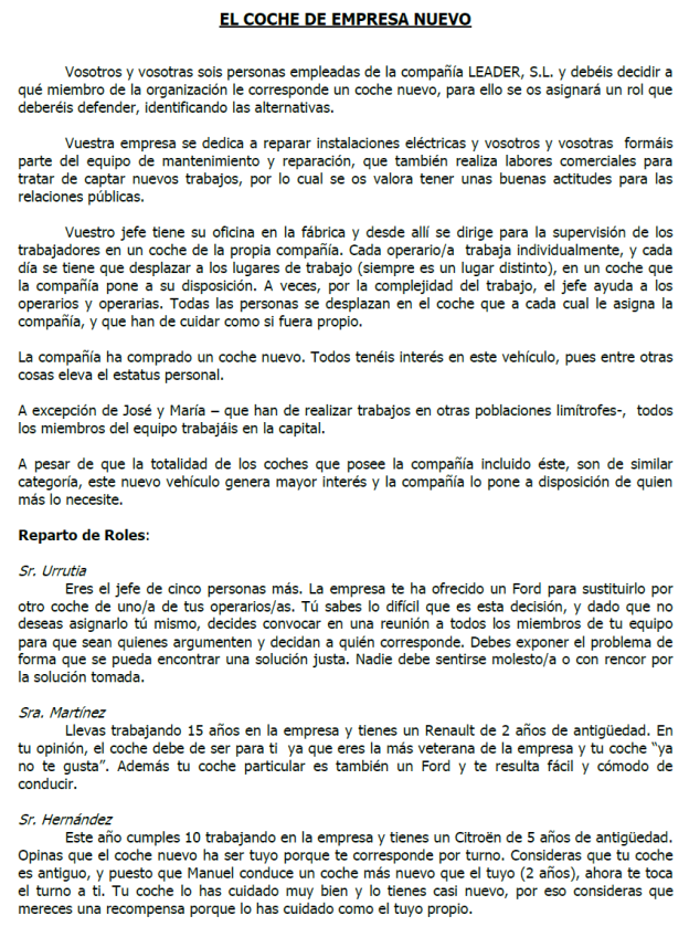 - Grupos de hasta 20 personas, discuten sobre un caso concreto (redactado por escrito, que será leído) dirigidos por un animador.