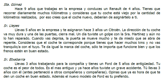 ORDENA POR ORDEN DE PRIORIDAD QUIÉN TIENE MÁS DERECHO AL COCHE DE LA COMPAÑÍA
