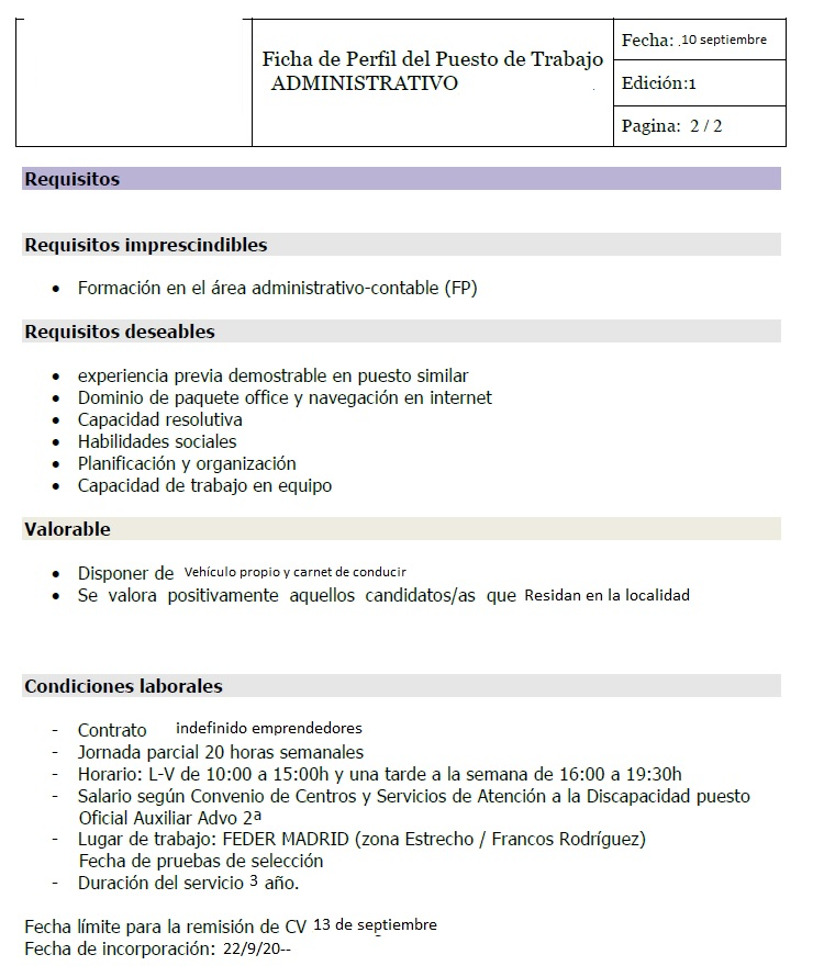 2.1 COMUNICACIÓN OFERTA DE TRABAJO AL INAEM
