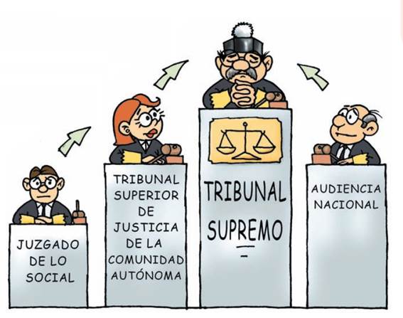 Sala de lo Social del Tribunal Supremo: Es el órgano judicial de mayor rango, con sede en Madrid y extiende su competencia a todo el Estado. Resuelve los recursos contra las sentencias dictadas por las salas de lo social de la Audiencia Nacional y de los Tribunales Superiores de Justicia.