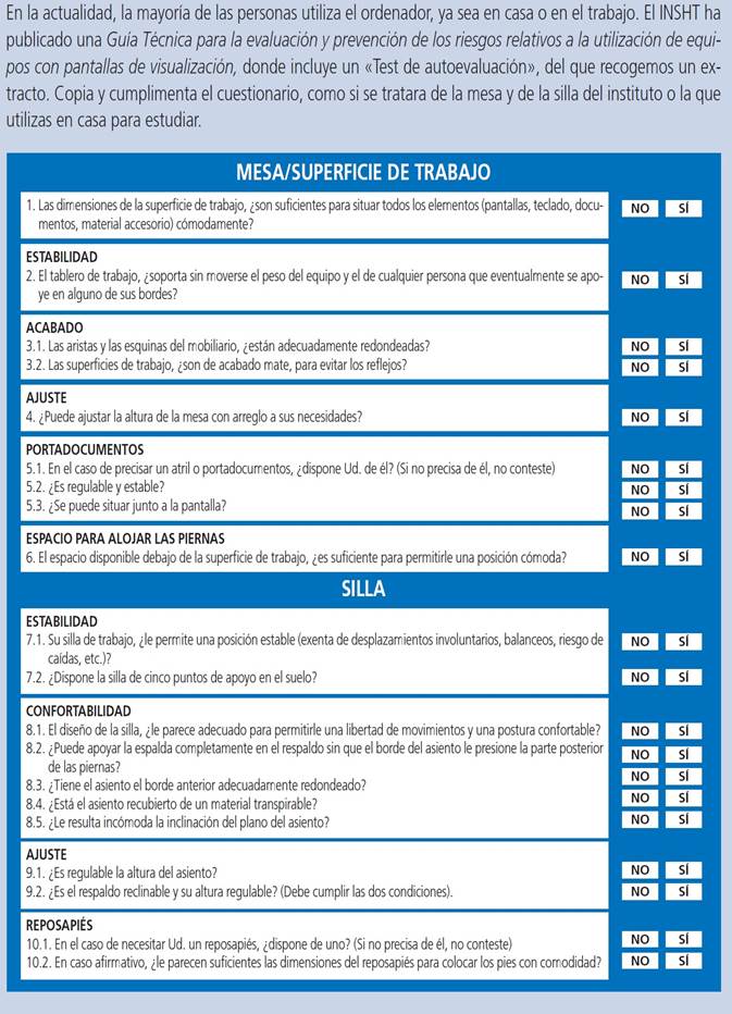 - Controlar el entorno del puesto de trabajo.