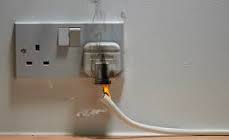 - Los enchufes no deben sobrecargarse con aparatos ya que los cables se calientan, el aislante se funde y se crea un cortocircuito pudiendo provocar un incendio. Se sobrecarga un enchufe cuando se conectan aparatos que demandan gran potencia como un radiador, la plancha, una freidora, el microondas... todos aquellos que calienten. Esos aparatos deben ir en enchufes separados.