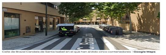 Calle de Brazal Candala de Santa Isabel en el que han ardido cinco contenedoresGoogle Maps
