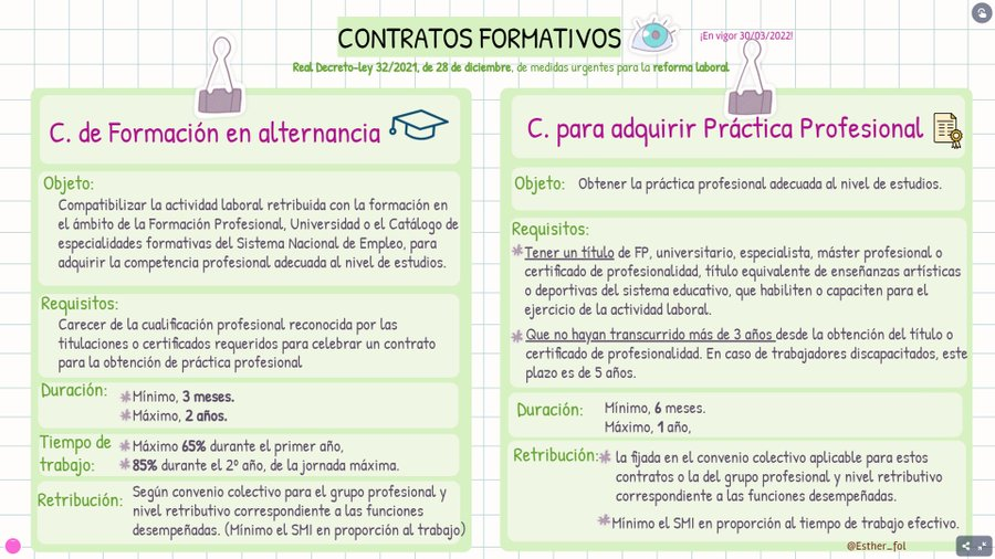 El contrato de formación en alternancia sustituyó con la reforma laboral de 2022 al contrato para la formación y el aprendizaje.