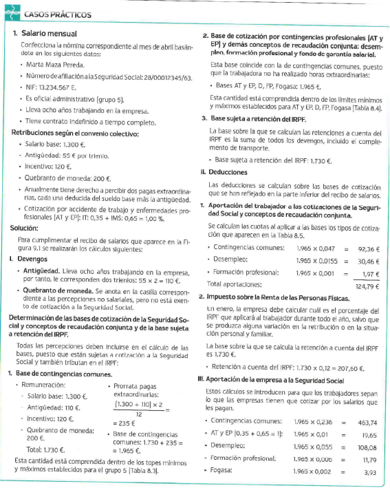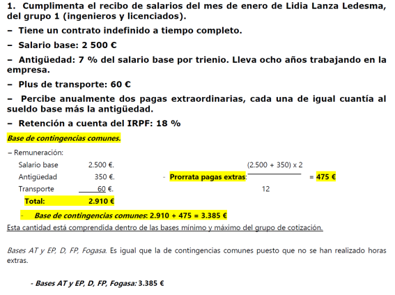 (3) Cotizaciones de la empresa: 1.500 euros x (23,60% + 1% + 6,30%) = 463,50 euros.