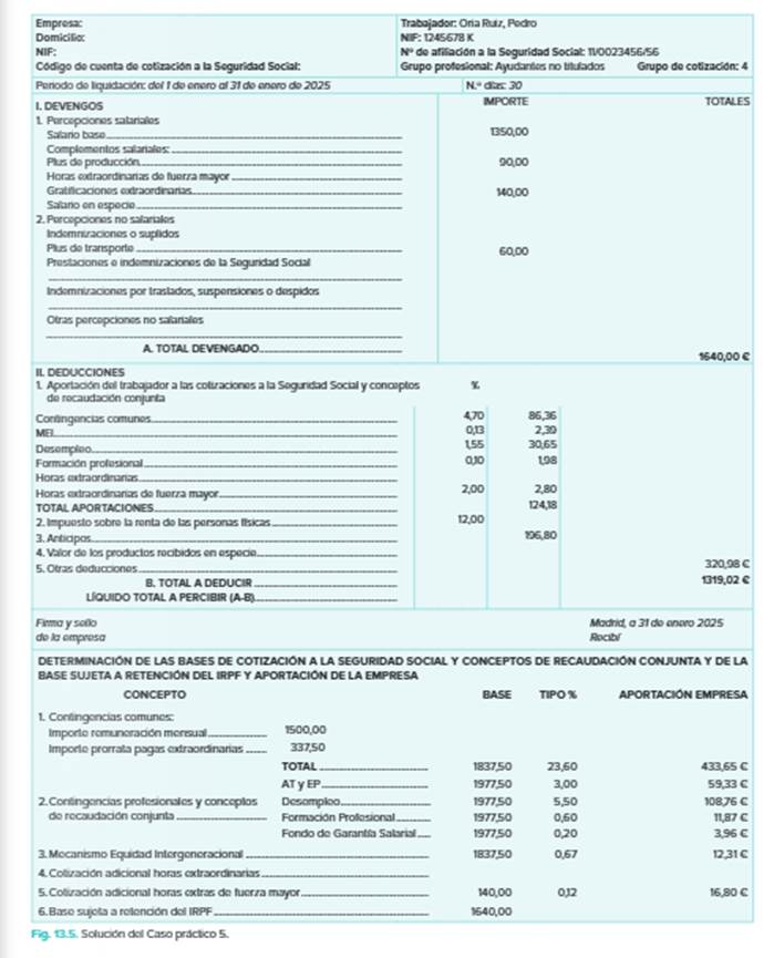(5) Cotizaciones de empresa y trabajador: 463.50 + 95,25 = 558,75 euros.