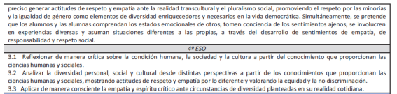 Los criterios de evaluación permiten comprobar si el alumnado ha adquirido las competencias específicas. Cada una de las competencias específicas de esta materia tiene asociados unos criterios de evaluación, detallados en la tabla siguiente que concretan las habilidades, destrezas, actitudes y conocimientos a valorar por el profesorado en el proceso de enseñanza aprendizaje