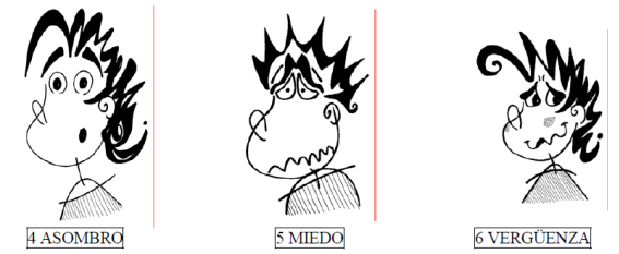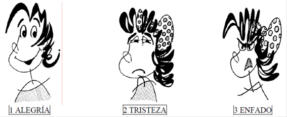 1 ALEGRÍA    2 TRISTEZA   3 ENFADO  4 ASOMBRO  5 MIEDO  6 VERGÜENZA